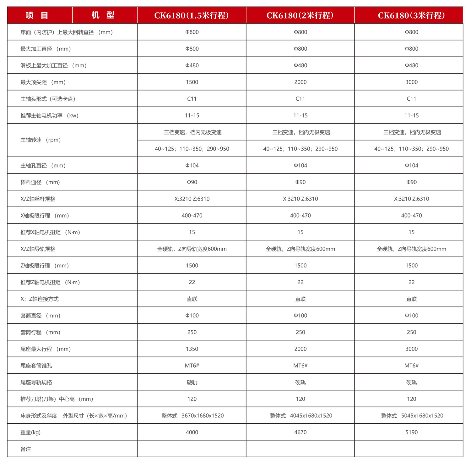 - 主轴采用前中后三支撑四轴承设计,刚性好,精度高;