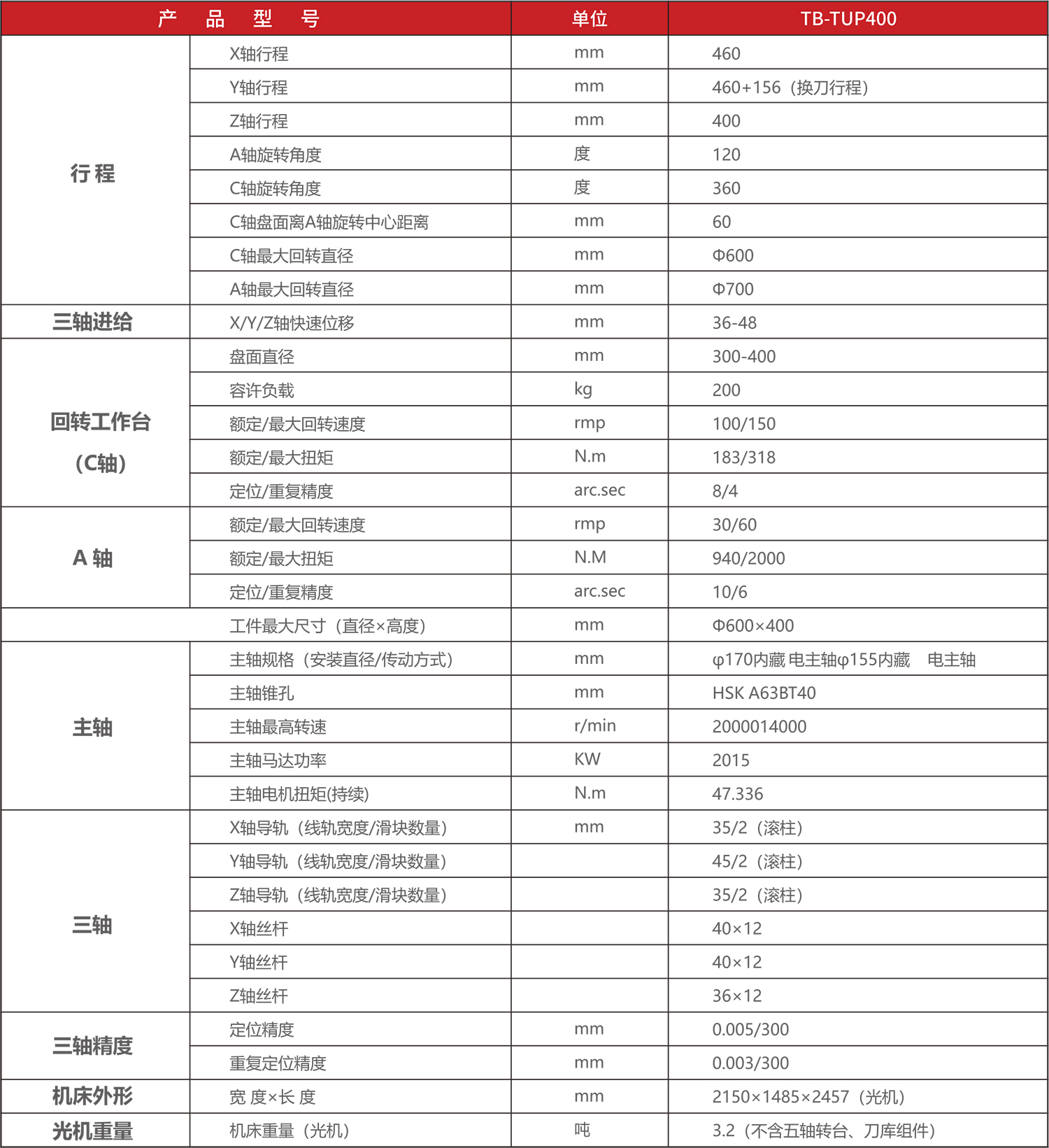 - 用于载重的工作台固定于底座上只进行摇摆、旋转运动,与三轴直线运动轴分离,三轴运动不受工件重量变化和转台旋转惯量的影响,联动、跟随精度高,可达到高稳定的加工性能;